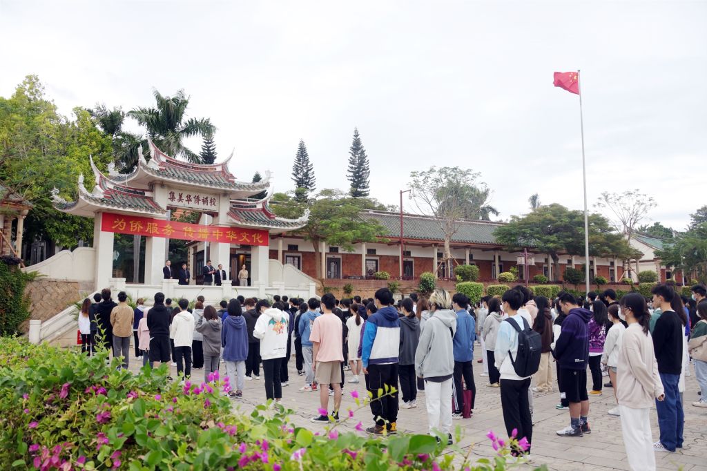 华文学院南门广场升旗仪式现场(华文学院供图)