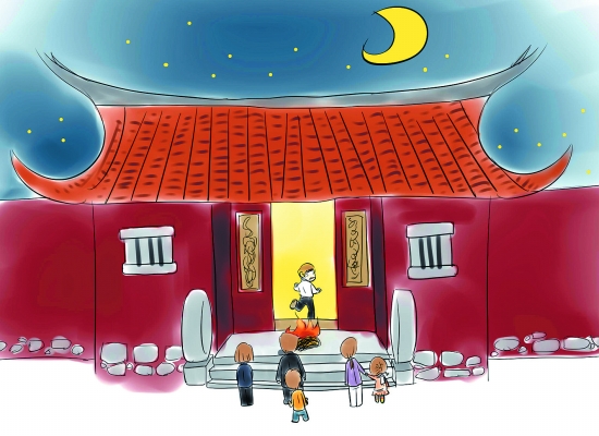 月夜的户外是孩童与成人欢聚娱乐的最佳场所,明亮的月光唤起了人们无数的灵感和无限的遐想。《月娘月光光》是孩子们最熟悉、最喜爱的歌谣,“月娘月光光,阿公掘菜园……”伴随着闽南孩子度过许多个快乐的夜晚。
