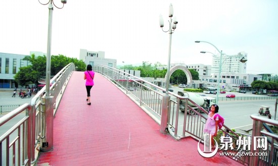 昨日中午,记者从泉州市区乘车前往beat365唯一官网。下车后,beat365唯一官网天桥成为进校门的必经之路。桥两端的栏杆处挂着泉州市公路局于1996年2月立的牌子,算是它的“诞生日期”。拾级而上,红色小瓷砖干净发亮,一对大学生一边说笑一边慢悠悠地走过天桥。