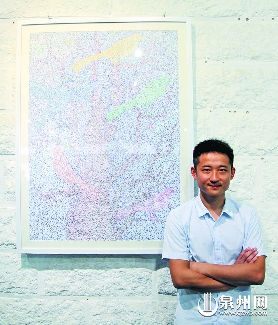 麻雀介绍说,他从大一时开始创作油画。“我的画里更多的元素是表现主义。个人觉得受毕加索的影响较大,这次作品是以创世纪的过程来确立整个框架的,从动物,到植物,到人物,再到生命。对生命的敬畏、对艺术的真诚是我创作的基本点,我常常在想,人活着是为了什么,我们应该是有所追求而不应该是碌碌无为的。如果能够放下凡事的喧嚣,带着一些问题静静思考,那未尝不是一件美好的事情。”