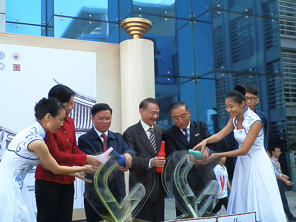 图:两岸嘉宾在开幕式上启动创意按钮 / 本报记者林苑摄