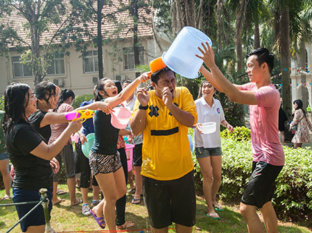 泼水节是泰国等东南亚国家的传统节日。节日期间,不分男女老少,可以互相泼水,表示洗旧迎新之意。讲究的人,用香樱桃花枝,从银钵中蘸取浸有玫瑰花瓣的清水,轻轻地向别人身上抖洒。普通人喜欢整桶整盆地泼,甚至用水龙管喷浇。人们被泼得越多越高兴,因为水象征着幸福。