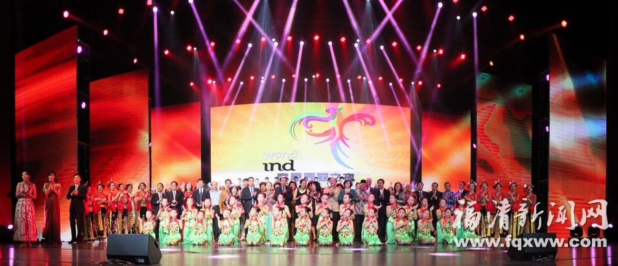 当晚,“印尼之夜”福清专场活动文艺晚会在印尼雅加达舞蹈团表演的《精彩首都雅加达舞蹈》中拉开序幕。随后,极具印尼民族特色的舞蹈节目《西爪哇雅蹦舞》等轮番上演,展现了印尼传统文化艺术的同时,让现场观众充分领略了来自异国的浓郁风情。市侨乡艺术团表演的舞蹈《月光光》、《侨魂》,植入、借鉴了福清送别、离乡的习俗,描述了离家千里下南洋艰苦创业的奋斗历程,展现了福清人敢闯敢拼的风采,讲述了当前和谐幸福的生活,表达了对华侨回乡的欢迎,富有情感的舞台演绎令在场华人华侨为之动容。现场还举行了竹筒乐互动环节,在印尼万隆歌星伊卡的指挥下,全场观众共同用竹筒摇出美妙的竹筒乐《月亮代表我的心》、《甜蜜蜜》,气氛十分热烈。最后,晚会在嘉宾和艺术家合唱的歌曲《啊哟妈妈》《歌声与微笑》中落下帷幕。