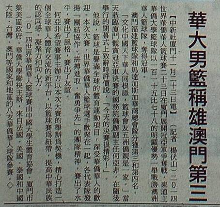 【华侨报】华大男篮称雄澳门第三