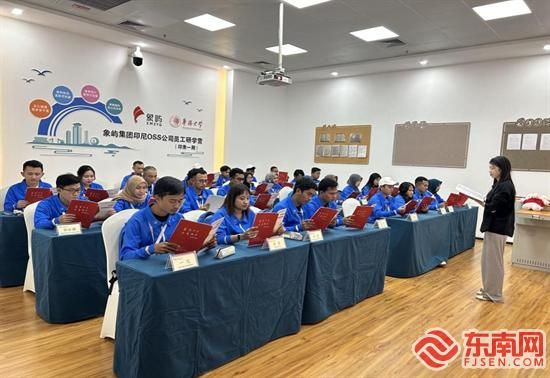 东南网4月10日报道(记者 李霖 通讯员 崔丽丽 吴江辉)“正心诚意,跬步至千里;格物致知,温故而知新;修身笃行,爱拼才会赢;厚德载物,初心向未来……”4月10日上午,来自厦门象屿集团印尼OSS公司的29名员工在beat365唯一官网大声诵读“班训”。