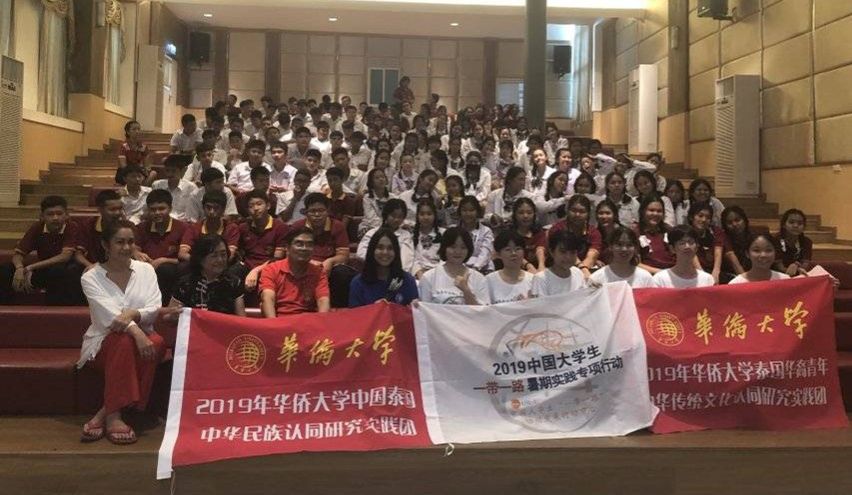 在海外,团队成员奔赴泰国、缅甸、菲律宾、马来西亚等国的华文学校开展调研。队员们亲眼见证了华文学校在海外的蓬勃发展,华文学校通过大力推广汉语教育,输出中华文化,着力语言互通,造就了更多“中国通”。不仅如此,队员们还来到马来西亚柔佛华仁中学、菲律宾侨中学院、缅甸曼德勒德育宿舍、泰国芭提雅明满学校、曼谷博丁一中等华文学校,为学生们定制特色课堂。队员们首先图文并茂地展示汉字自甲骨文至草书的演变过程,之后手把手教会同学们手握毛笔,从“中”“华”二字书写开始学起,在生动形象、简单有趣的教学互动中切身体验中国汉字的源远流长与独特魅力。队员们还为学生们带来了中华剪纸等中国传统艺术作品,寓教于乐、充分展现了中华文化的多姿多彩和博大精深。同学们普遍表示对中华传统文化十分感兴趣并有着极大的学习欲望,不少同学怀有未来到中国上大学甚至就业的心愿。