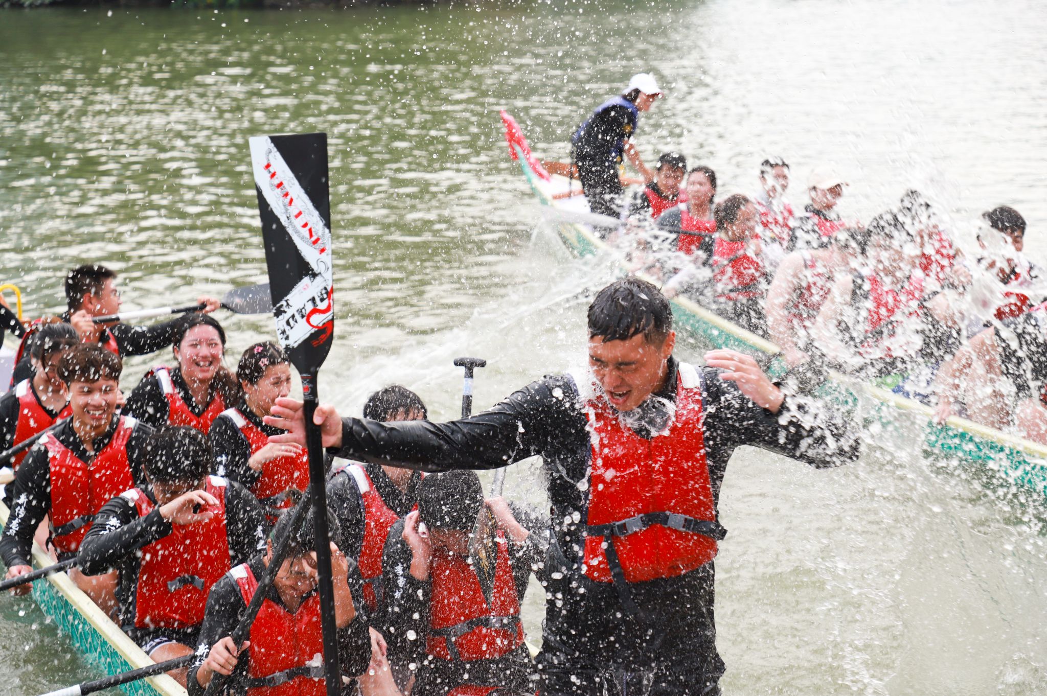 Enthusiastic contestants at Huaqiao University’s dragon boat race on June 11. [Photo provided to chinadaily.com.cn]