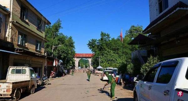 10月31日,果敢资讯网称,联盟组织已控制清水河街区及周边的缅军据点。图为29日果敢同盟军的士兵在清水河靠近中缅边境的街道清理道路。图自果敢资讯网脸书