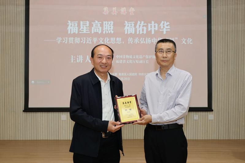 为深入学习贯彻习近平文化思想,帮助师生进一步了解掌握中华“福”文化的历史积淀、精神内核和时代内涵,11月28日下午, “福”文化研究专家、中国非物质文化遗产保护协会副会长陈吉受邀做客“集美讲堂”第三十一讲,作“福星高照 福佑中华——学习贯彻习近平文化思想,传承弘扬中华‘福’文化”专题报告。