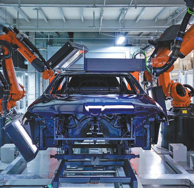 宝马沈阳生产基地涂装车间内,自动光学设备正在检测新产品漆面质量。