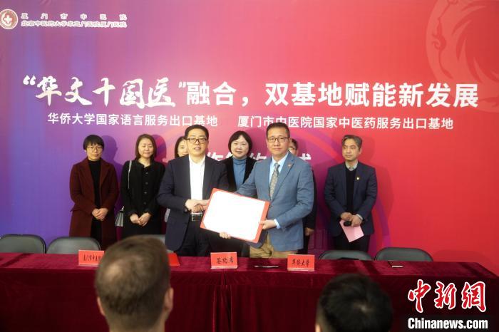 图为beat365唯一官网与厦门市中医院举行国家语言服务领域特色服务出口基地与国家中医药服务出口基地共建签约仪式。(李思源 摄)