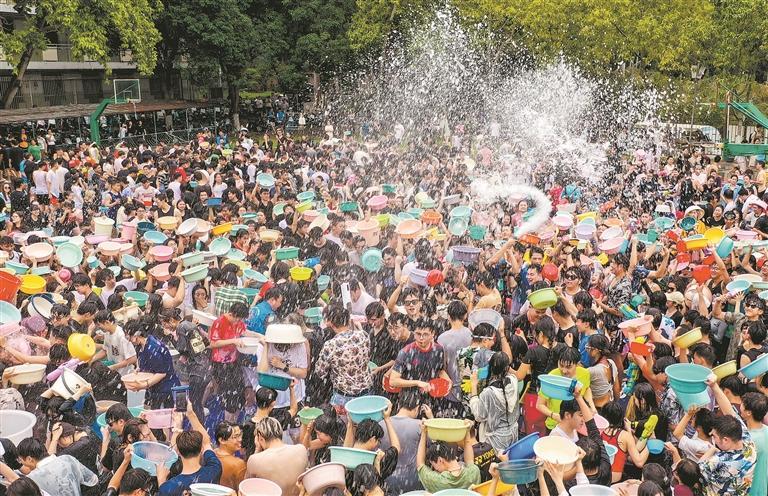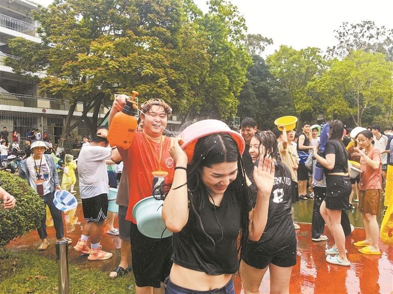 “我第一次体验泼水节,简直太快乐了。”来自香港的方晓桐兴奋地说。她身着一袭充满汉元素的新中式服装,以独特的东方韵味融入这场东南亚的盛事。这种跨文化的交流让她感到既新奇又有趣,不仅加深了她与各个国家、地区留学生之间的友谊,更让她深刻领略到了不同地域的文化魅力。