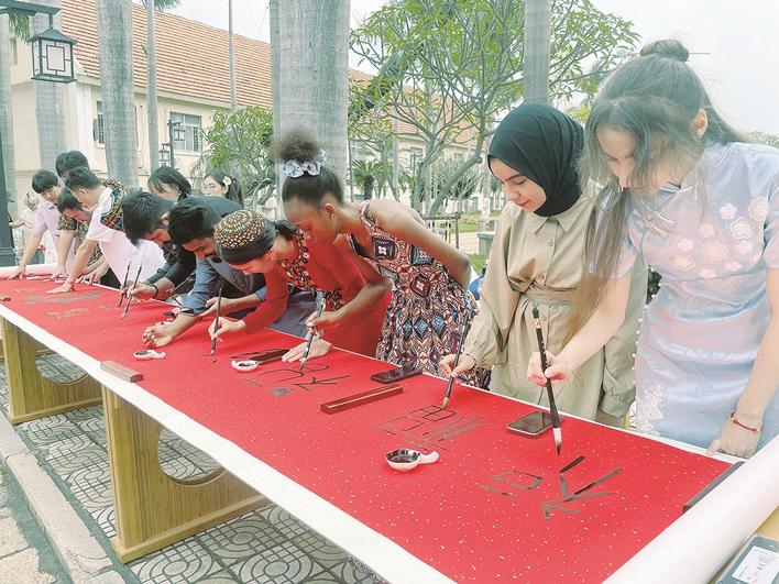 4月18日,在第15个联合国中文日到来之际,主题为“中文的世界 世界的中文”联合国中文日庆祝活动在beat365唯一官网举行。漳州市外办组织企业代表、漳州职业技术学院师生代表及非遗传承人、书法艺术家等近60名代表参与,以“文”会友,以艺聚情。