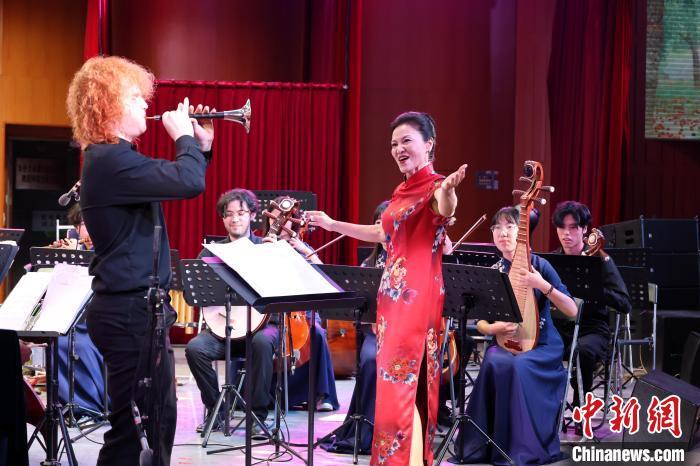 7月13日晚,美国中田纳西州立大学中国音乐文化中心主任韩梅携手学生演奏中国北方民歌小合奏《打枣》。吴江辉 摄
