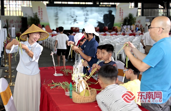 茭白叶手工制品编织体验。东南网记者 陈培源 摄