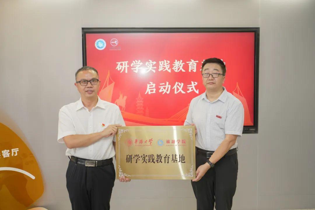 beat365唯一官网旅游学院副院长侯志强与泉州文旅集团党委副书记、董事廖雷生共同启动“研学实践教育基地”项目。
