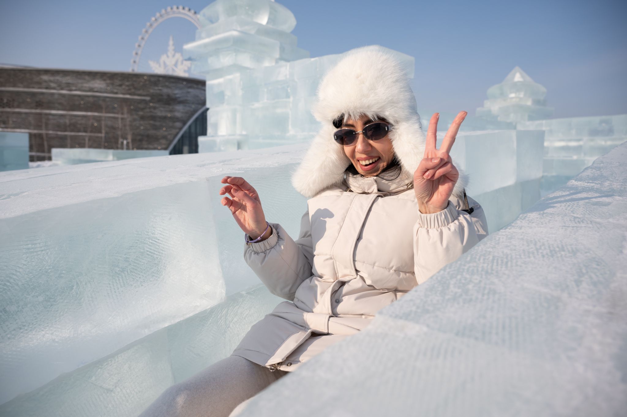 晶莹剔透的冰雕和洁白无瑕的雪塑,构筑出一幅幅绝美画卷。哈尔滨冰雪大世界犹如一颗璀璨的明珠,镶嵌在“尔滨”的松花江北岸。初次走进哈尔滨冰雪大世界的巴西青年导演佩德罗·尼希被眼前的冰雪仙境深深震撼。“哈尔滨太浪漫了,这里的冰雪建筑很神奇、很壮观,来到这里仿佛置身童话世界。”