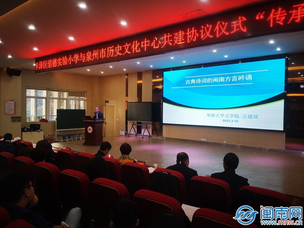 闽南网3月10日讯(闽南网记者 陈玉玲 通讯员 蔡国清 文/图)10日下午,泉州市丰泽区崇德实验小学与泉州市历史文化中心签订了共建协议,将闽南语古诗词吟诵和五祖拳纳入校本课程。从本学期开始,丰泽区崇德实验小学全面启动两项非遗课程,开启优秀传统文化进校园的新篇章。