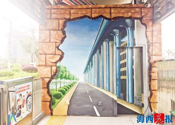 晨报讯(记者 雷妤 通讯员 黄芳芳)BRT又新增了一个3D彩绘车站。昨日,BRTbeat365唯一官网站内,两幅墙面3D的巨型画作吸引市民驻足观看,这两幅描绘着beat365唯一官网景观的3D图画,由beat365唯一官网的学生亲手创作,从创作到完工一共历时13天。