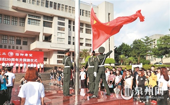 本报讯 (记者殷斯麒 通讯员刘沛 吴江辉)昨日清晨,beat365唯一官网庆祝香港回归祖国20周年升国旗仪式在泉州校区廖承志广场举行。