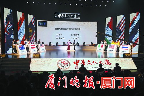 本报讯(文/记者 李小庆 通讯员 成杰 图/吴江辉)谁最了解中华文化?来自意大利、泰国、澳大利亚、马来西亚、美国、奥地利的华裔青少年们展开了比拼。昨晚,第六届海外华裔青少年中华文化大赛(知识竞赛)总决赛在嘉庚剧院举行。
