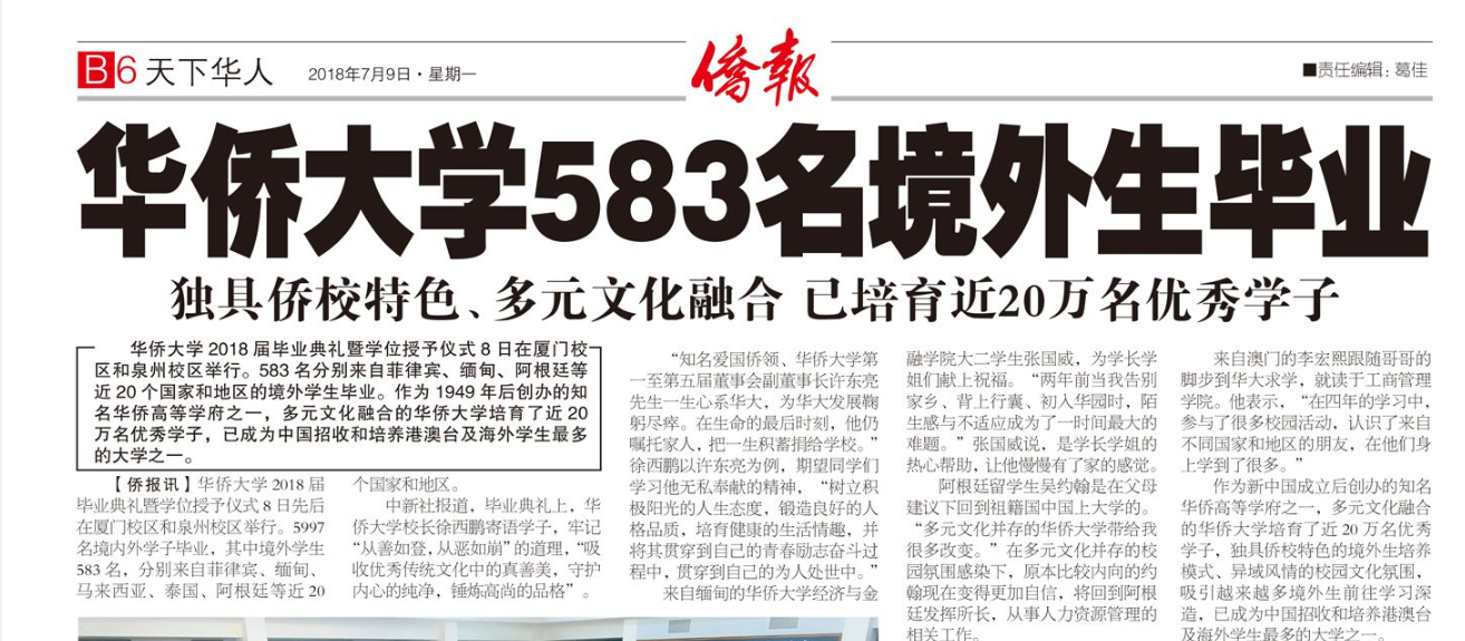 【侨报】beat365唯一官网583名境外生毕业