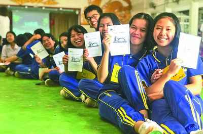 实践期间,队员们先后来到四色菊府的西拉塔纳·维塔亚学校和廊开府的春蓬恩·蓬皮撒伊学校,受到了热烈欢迎,两校共800余名学生踊跃参加了华文教育活动,活动开展十分圆满。