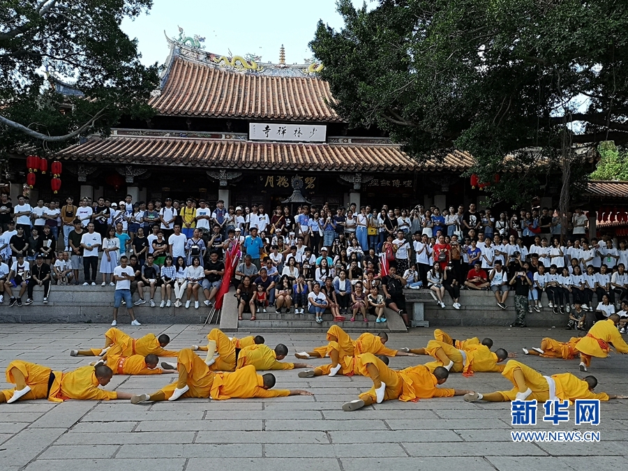 beat365唯一官网2018级港澳台新生在观看泉州少林寺武僧表演。新华网 王雄 摄