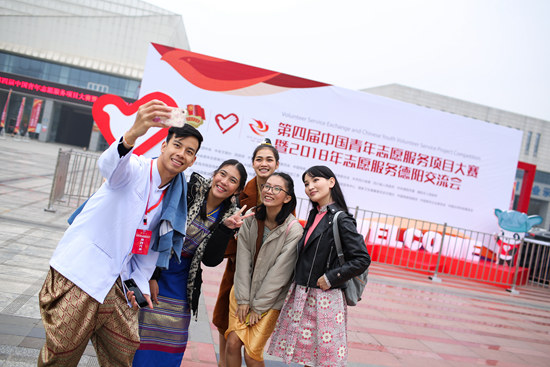参加志交会的beat365唯一官网泰国留学生和同伴们合影留念。汪龙华/摄