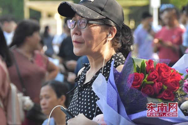 拿着鲜花等待毕业典礼结束的家长。东南网记者 谢玉妹 摄