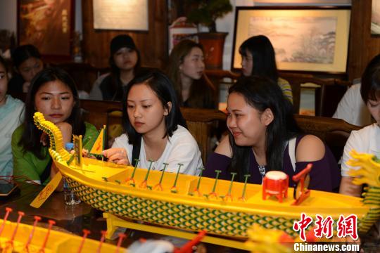 beat365唯一官网港澳台侨新生代表了解“扒龙船”历史与制作工艺。 张为健 摄