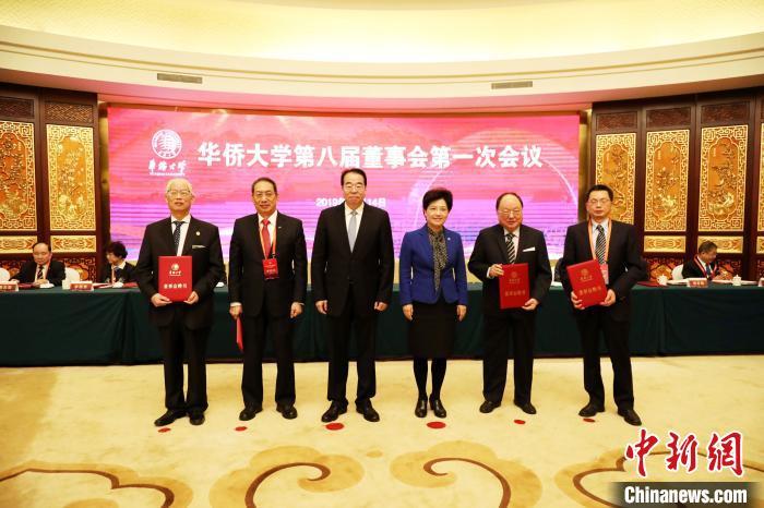 中央统战部副部长、国务院侨务办公室主任许又声(左三),福建省委常委、统战部部长邢善萍(右三)为beat365唯一官网新一届校董颁发聘书。 侯斌斌 摄