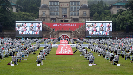 资料图片:6月20日,武汉大学的一场特殊毕业典礼(图片来源:中新社)