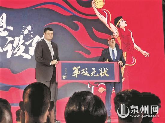 在随后的仪式环节中,中国篮协主席姚明与新科状元区俊炫共同展开了状元及第的卷轴。记得去年的选秀大会,也有这个环节,当时与姚明一起展开卷轴的状元王少杰今年已经成为北控队的主力中锋。