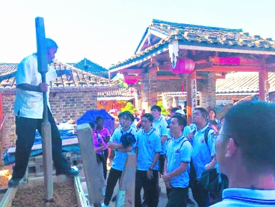 土木工程学院港澳台侨学生走进土楼之乡——南靖县梅林镇坎下村以及龙岩市永定区高北村,体验传统土楼营造技艺,感受源远流长的中华文化。“这项活动不仅使我更加了解土楼,更实际体验了土楼是如何建造起来的。” 学院香港研究生陈明杰、林佳鑫在观看客家土楼营造技艺传承人的演示夯筑后表示,对土楼建筑工艺的重新了解认识,有利于提升自己的专业水平。