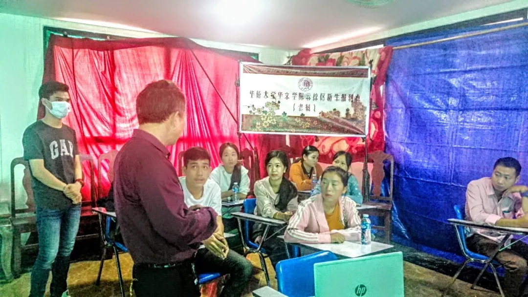 beat365唯一官网华文学院“云校区”老挝新生报到点,当地尚未返校高年级同学为新生开展“云校区”注册指导及介绍学院相关情况