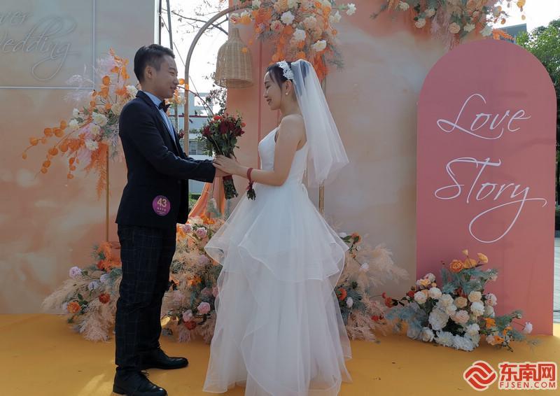 手捧鲜花、单膝跪地,新郎们浪漫求婚。 东南网记者 刘学佳 摄
