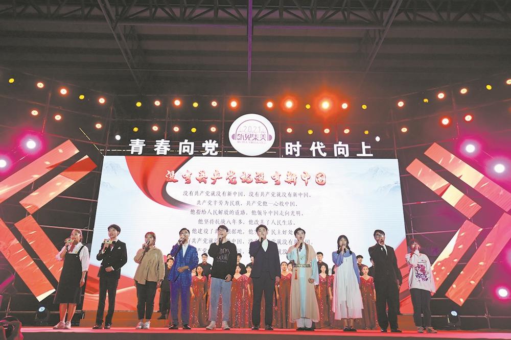 在启动仪式的现场,2000余名学子用彩色荧光棒组成1921—2021的形状,向脚下这片热土深情告白,成为本场晚会的一大亮点。