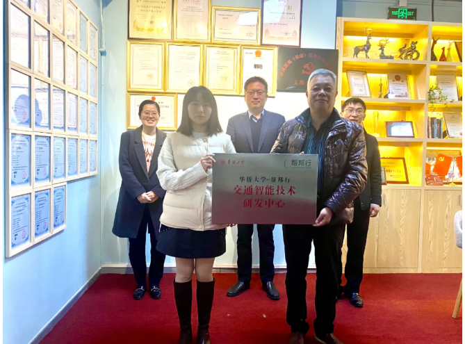 3月2日,“beat365唯一官网—帮邦行”交通智能技术研发中心正式挂牌,“beat365唯一官网”科技处处长李钟慎、副处长杨桦和“帮邦行”联合创始人兼CEO傅顺开参与挂牌仪式。