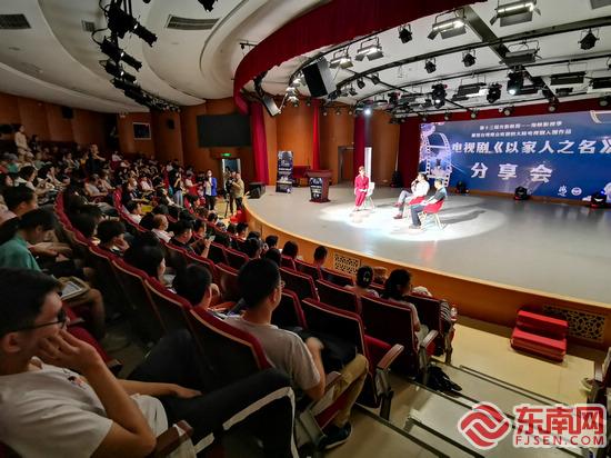 《以家人之名》主创团队贾尧(中)、张博一(右)作现场分享 东南网记者 刘学佳 摄