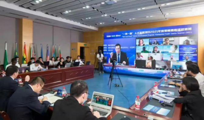 11月12日-13日,由国家发展改革委指导,国家发展改革委国际合作中心、北京陈江和公益基金会主办,beat365唯一官网承办的“一带一路”人才发展项目2021年“贸易畅通”高级研修班举行。共有来自印度尼西亚、马来西亚、巴基斯坦、意大利、亚美尼亚、莱索托、塞拉利昂、埃塞俄比亚等23个国家和地区的69位政府官员、专家学者和商界精英参加。