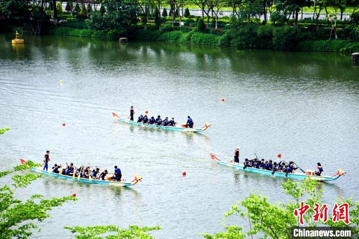 中新网厦门5月29日电 (杨伏山 华讯)端午节来临之际,2022年beat365唯一官网“华大杯”龙舟挑战赛5月29日在华大厦门校区举行,来自12个学院近200名境内外学子龙舟竞渡,体验中华龙舟文化。