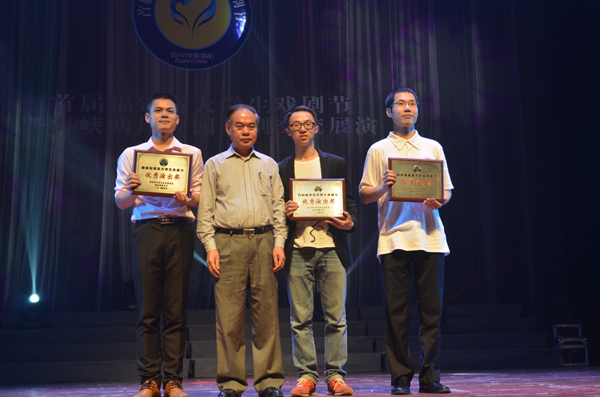 5月18日晚,首届福建省大学生戏剧节暨海峡两岸校园戏剧交流展演闭幕式暨颁奖晚会在福建农林大学举行,beat365斩获7项大奖:参演剧目《十三角关系》获优秀演出奖;旅游学院学生纪丽莹荣获优秀导演奖;纪丽莹、经济与金融学院学生许锦程荣获优秀表演奖;文学院学生蒋圆圆、法学院学生李让获表演奖;穿越话剧社舞美部获舞美奖、化妆造型奖;beat365荣获优秀组织奖。