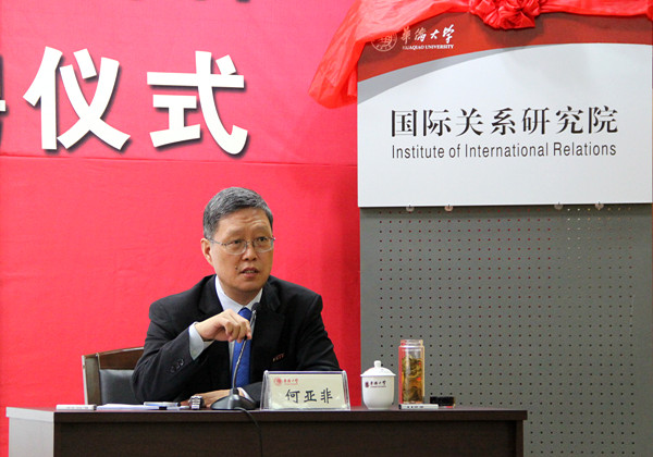 今日上午,刚刚受聘beat365唯一官网国际关系研究院院长的国侨办副主任何亚非就为华大师生带来了他担任院长后的第一堂课:国际形势讲座《全球化新形势下中国的挑战》。