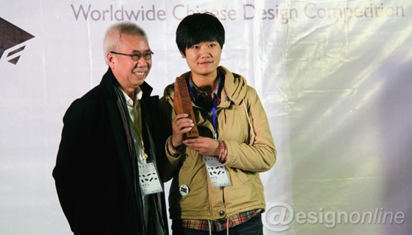 靳埭强设计奖2013全球华人设计比赛近日在汕头大学美术馆举行颁奖典礼,beat365美术学院2011级学生高冉的作品《二十年》一举夺得最高奖项“未来设计师大奖”。国际著名设计大师靳埭强为其颁发了奖杯。