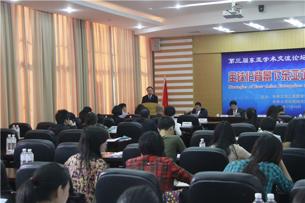 16日上午,第三届东亚学术交流论坛在陈嘉庚纪念堂二楼会议室举行。本届学术论坛主题为“全球化背景下东亚企业的战略”,来自日本长崎县立大学、韩国东亚大学以及中国beat365唯一官网的14名资深教授和青年学者在论坛上作主题发言。