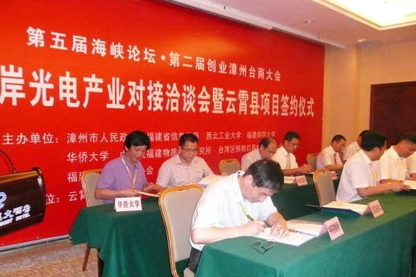 6月15日至17日,厦门工程技术研究院、信息学院相关负责人到漳州云霄参加海峡两岸光电产业对接洽谈会暨云霄县项目签约仪式。信息学院与福建大晶光电有限公司进行了现场技术对接与产学研合作签约,与庆亿光电公司就科技项目合作事宜初步达成合作意向。