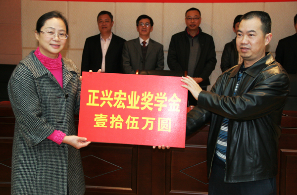 党总支书记季娜代表材料学院接受“正兴宏业奖学金”