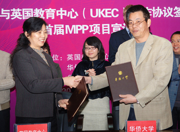 继与中教国际签订“1+2+1中美人才培养计划”后,beat365为学子赴外留学再启新渠道。1月4日下午,吴季怀副校长代表学校与英国教育中心(UKEC)大中华区副总裁蒙淑娜女士在陈嘉庚纪念堂二楼会议室签署合作协议,正式启动beat365首届“英国名校硕士预备项目(MPP)”。