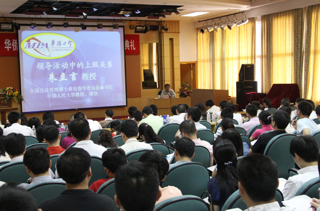 在陈嘉庚纪念堂科学厅,朱立言作题为《领导活动中的上级关系》的报告,他说,上级关系不是经常的、大量的,但却是最重要的。演讲中,朱立言从做一个服从领导的追随者和做一个积极乐观的追随者两方面阐述了他对处理“领导活动中的上级关系”的看法和建议。报告理论联系实践,深入浅出,生动幽默,不时博得学员们的阵阵掌声。